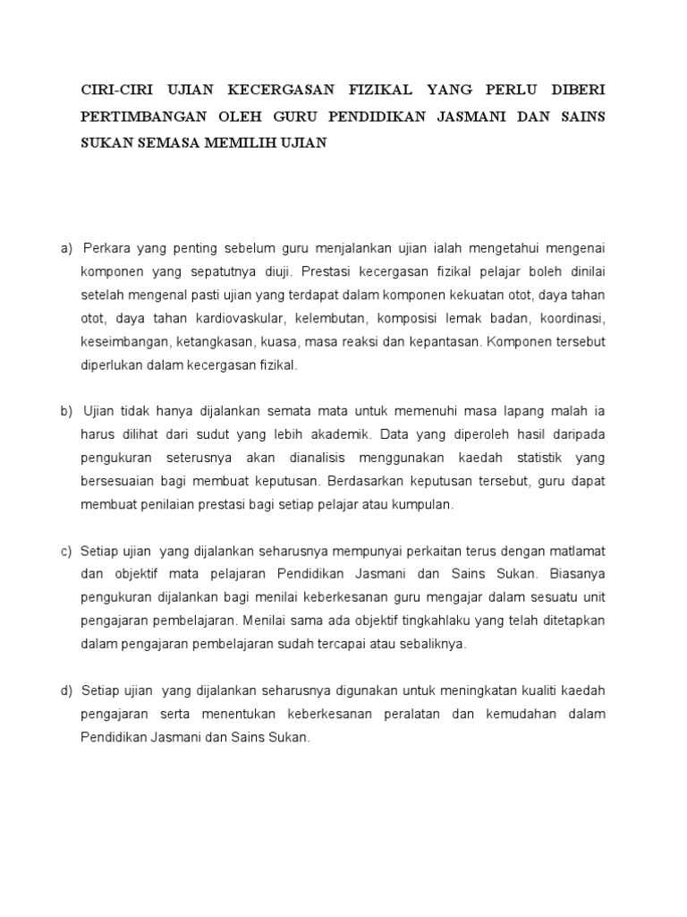 Ciri Ciri Ujian Kecergasan Fizikal Pdf